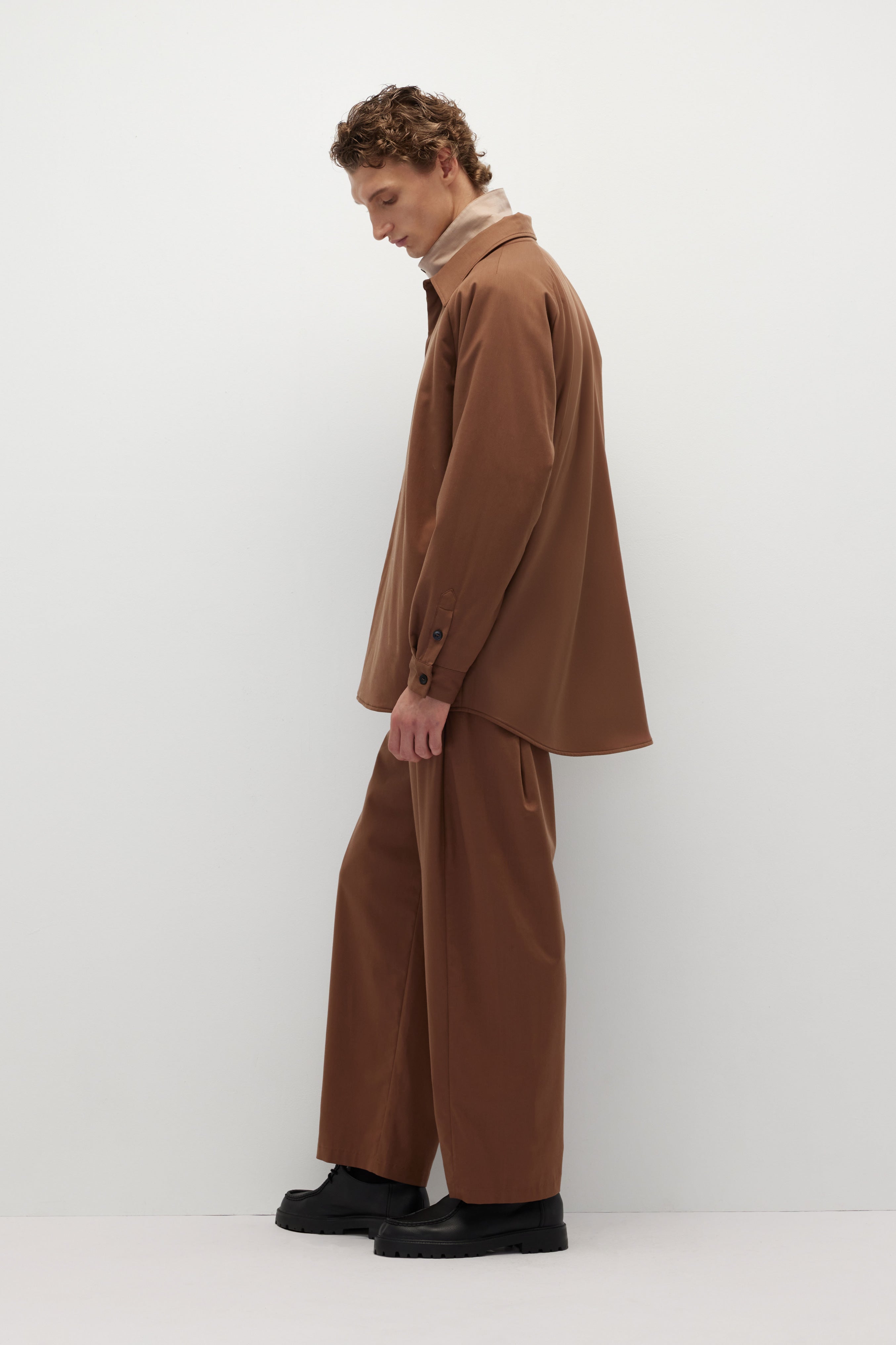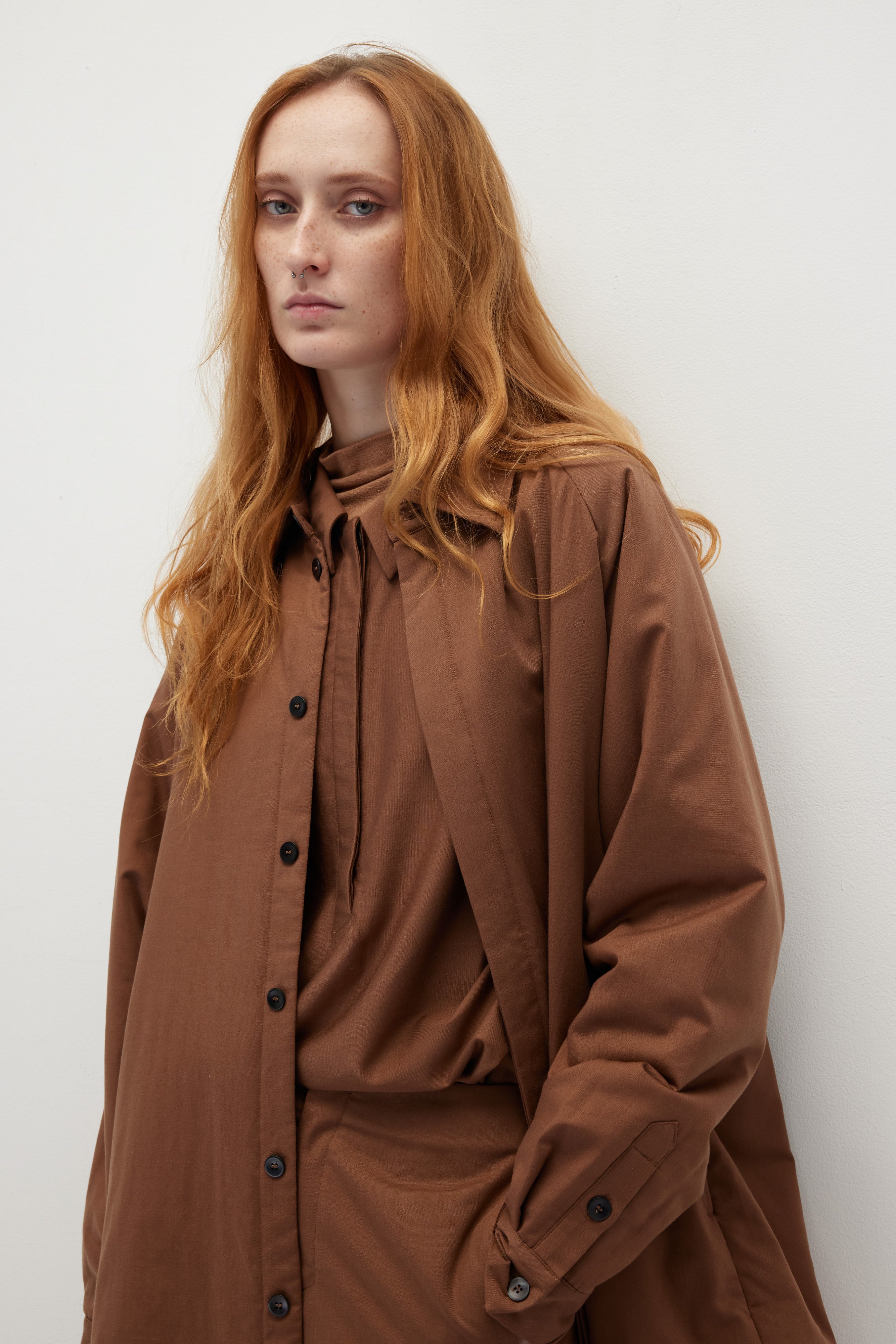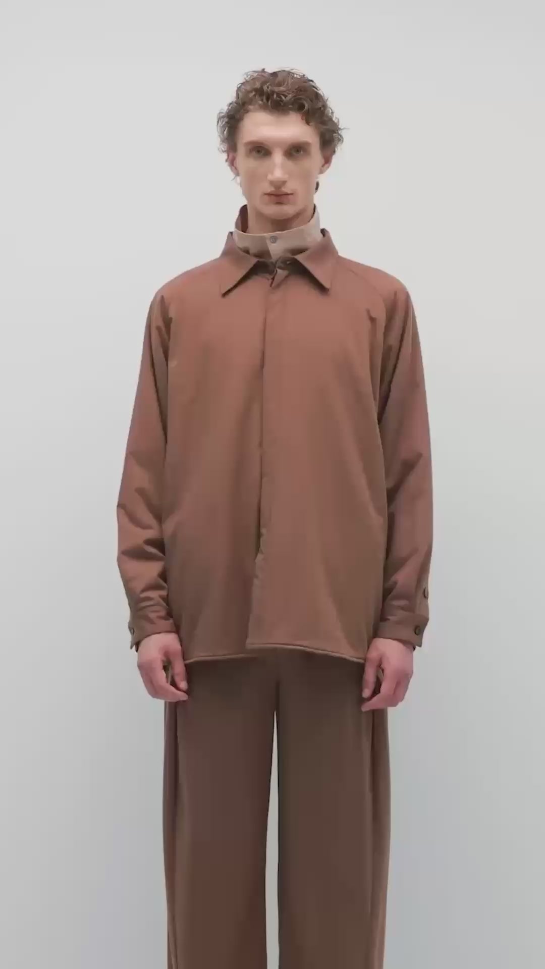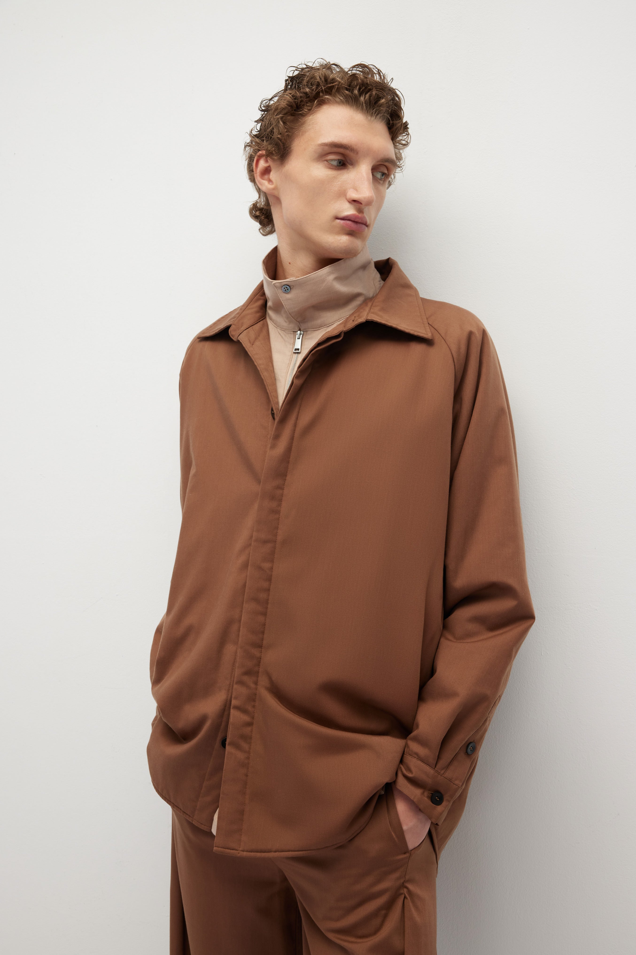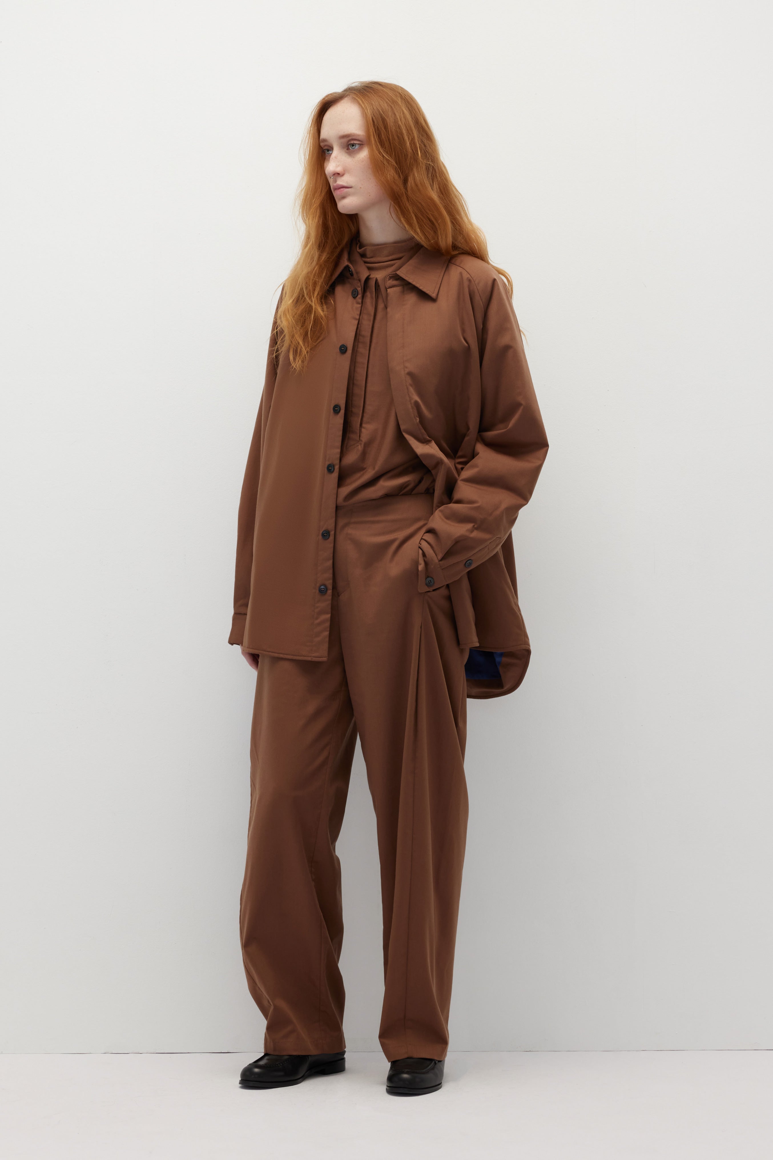 正装技術を用いて作られたシャツジャケットは、無縫製と隠し前立てのデザインが特徴で、シンプルで洗練された印象を与えます。表地と裏地に配色デザインを施し、ユニークな個性を演出。表地にはテンセル™とメリノウールの混紡素材を使用し、中綿にはRadiax®のチタニウムテクノロジーを採用し、急速に温度を上昇させ、体温を保持します。裏地にはベンベルグ™キュプラを使用し、シルクのような手触りと優れた体温調節・帯電防止機能を提供します。